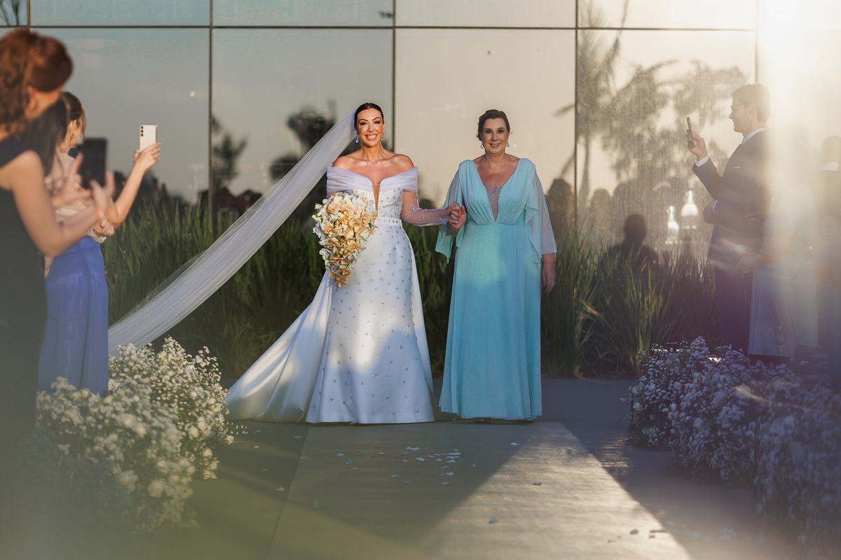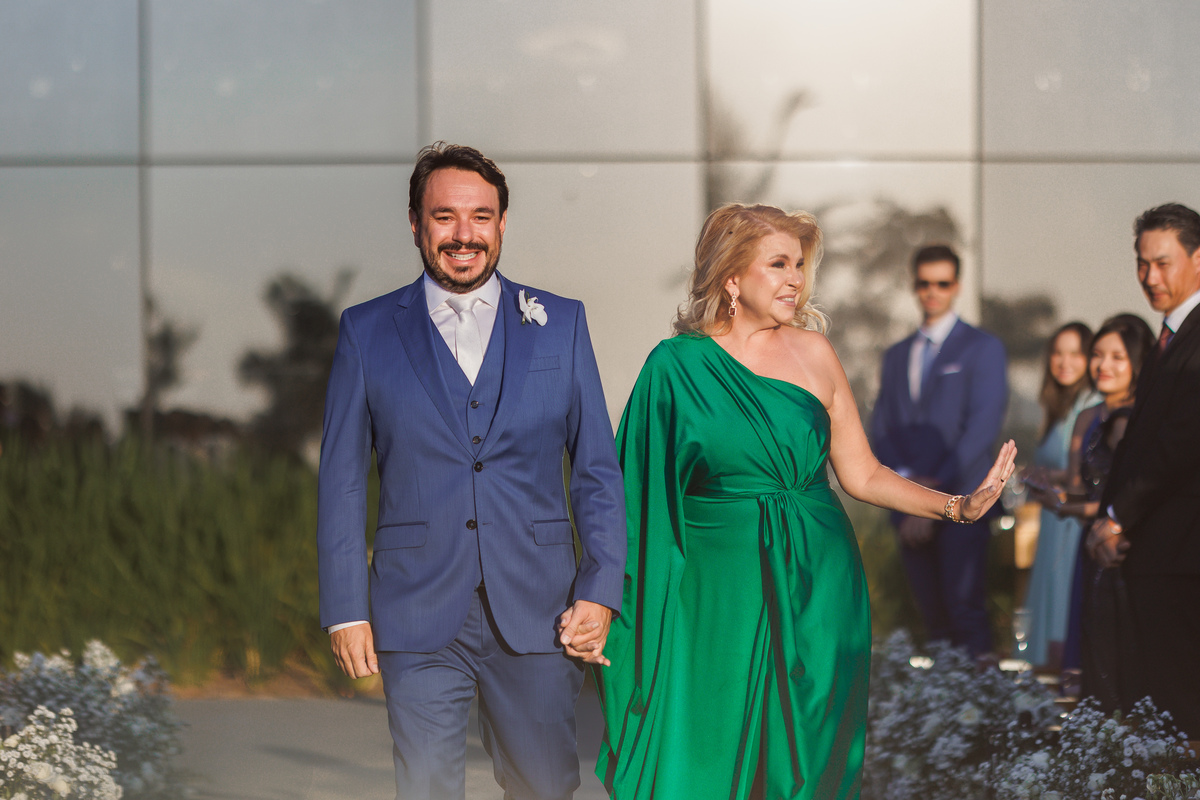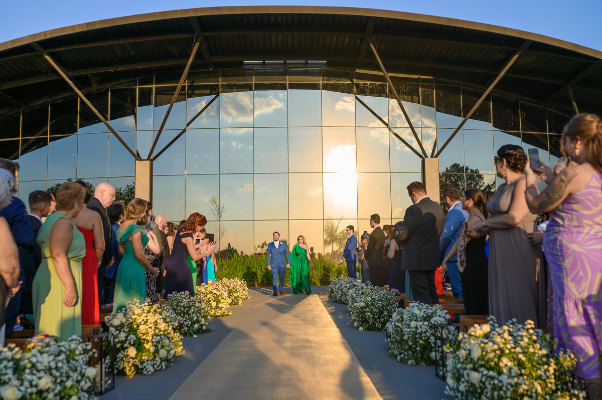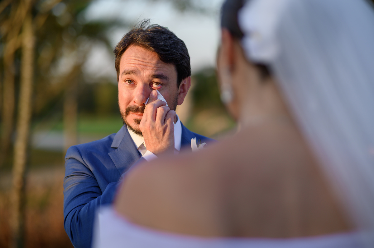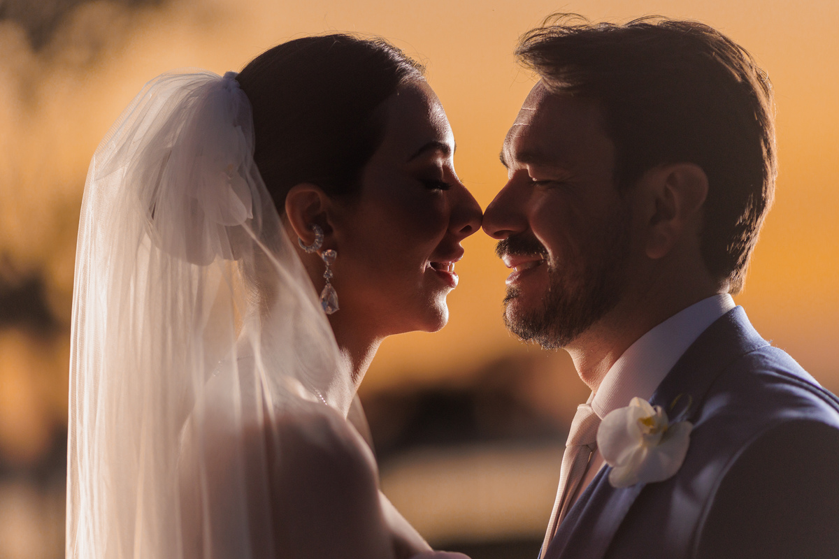 Entre lágrimas contidas e sorrisos que diziam mais do que qualquer palavra, cada olhar trocado parecia reafirmar a certeza de que estavam exatamente onde deveriam estar. A cerimônia ao pôr do sol trouxe uma luz quente e acolhedora, envolvendo o casal e todos que estavam ali para testemunhar essa união. Era impossível não se emocionar.