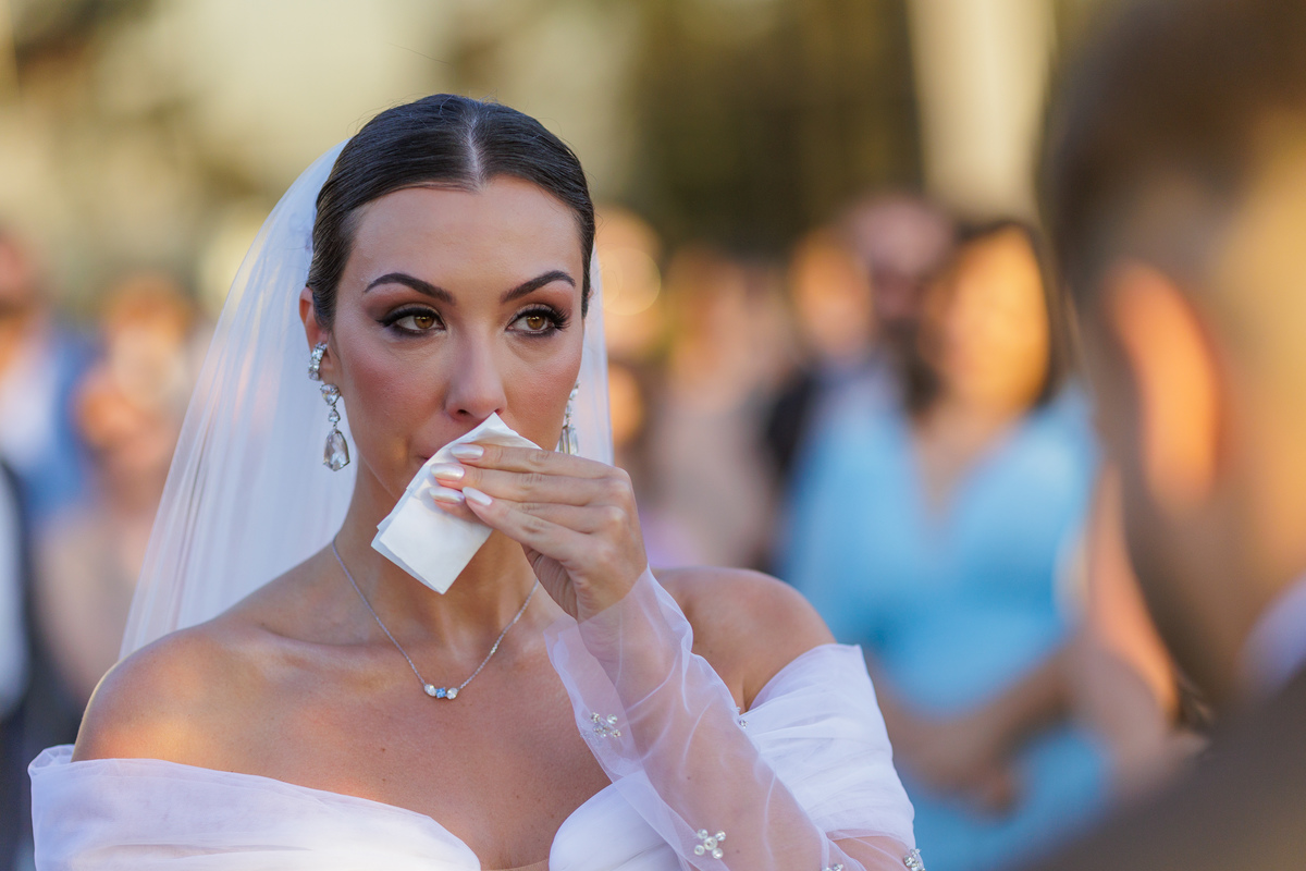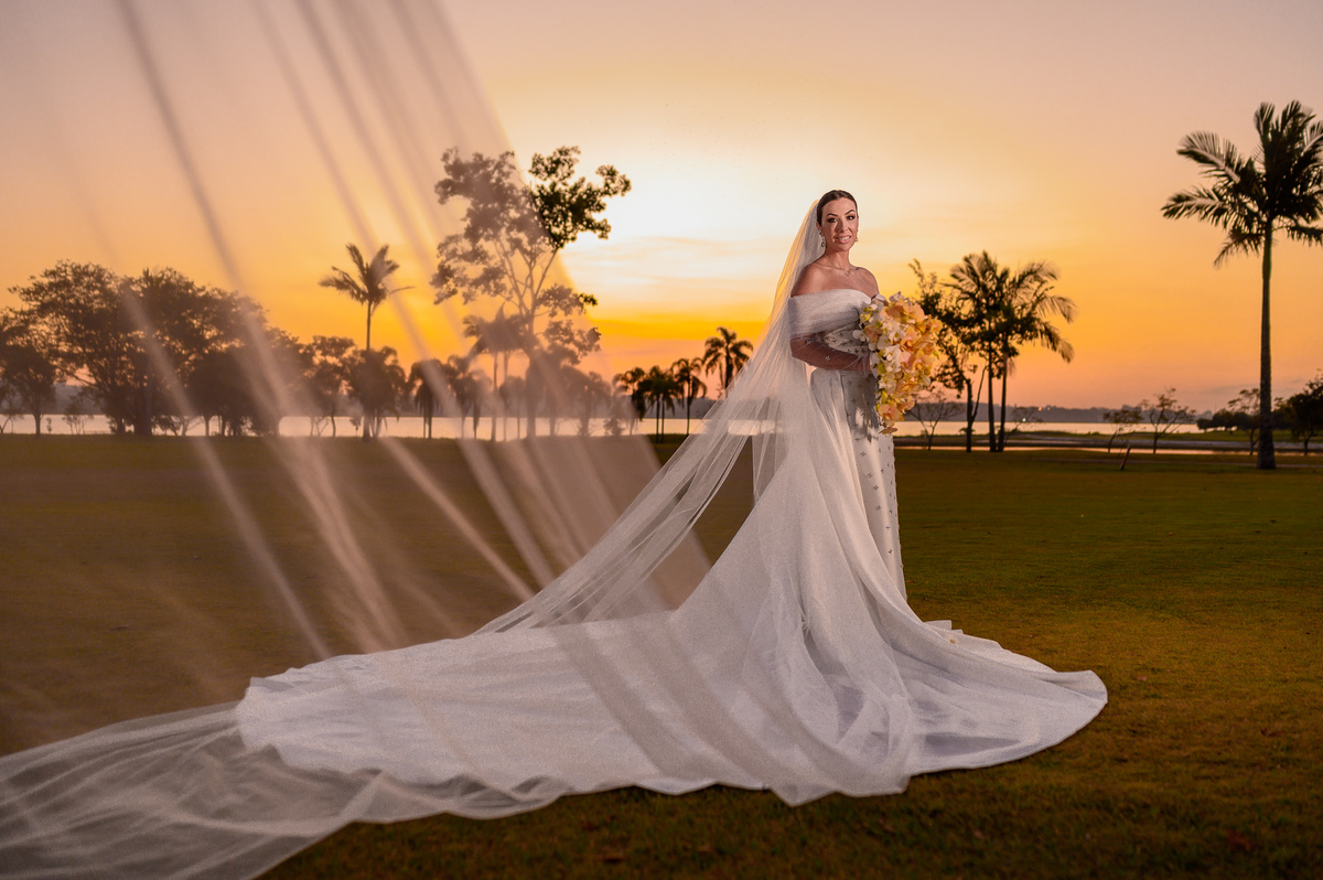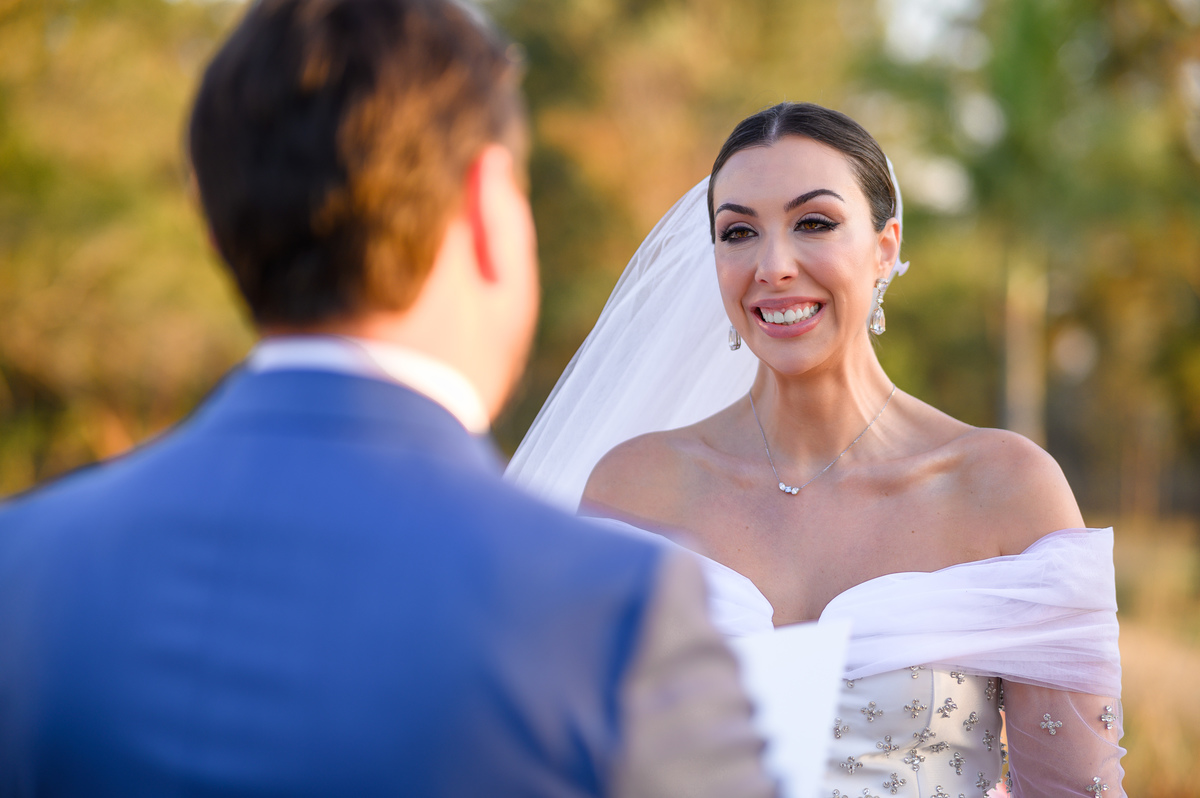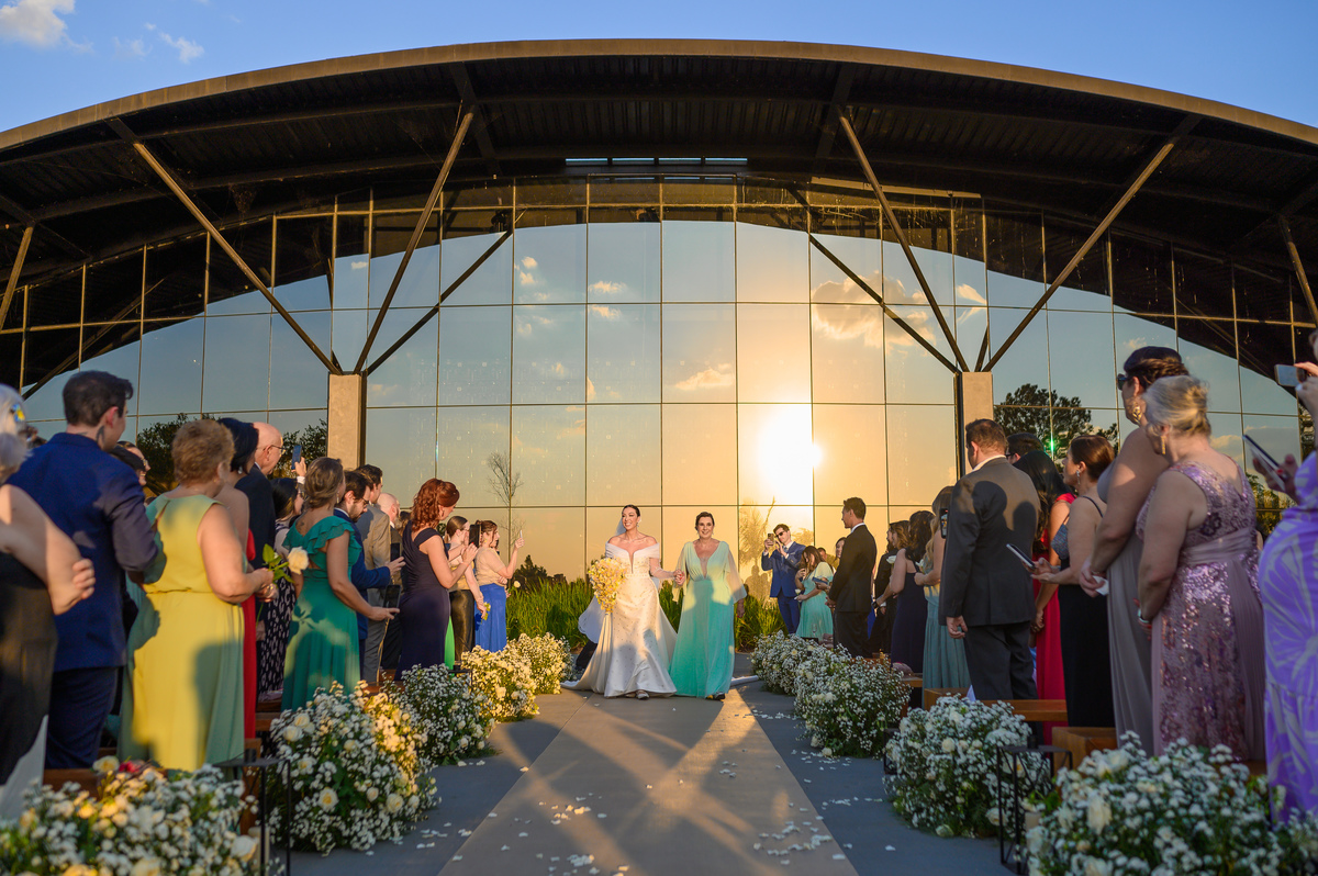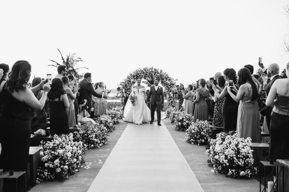 Entre lágrimas contidas e sorrisos que diziam mais do que qualquer palavra, cada olhar trocado parecia reafirmar a certeza de que estavam exatamente onde deveriam estar. A cerimônia ao pôr do sol trouxe uma luz quente e acolhedora, envolvendo o casal e todos que estavam ali para testemunhar essa união. Era impossível não se emocionar.